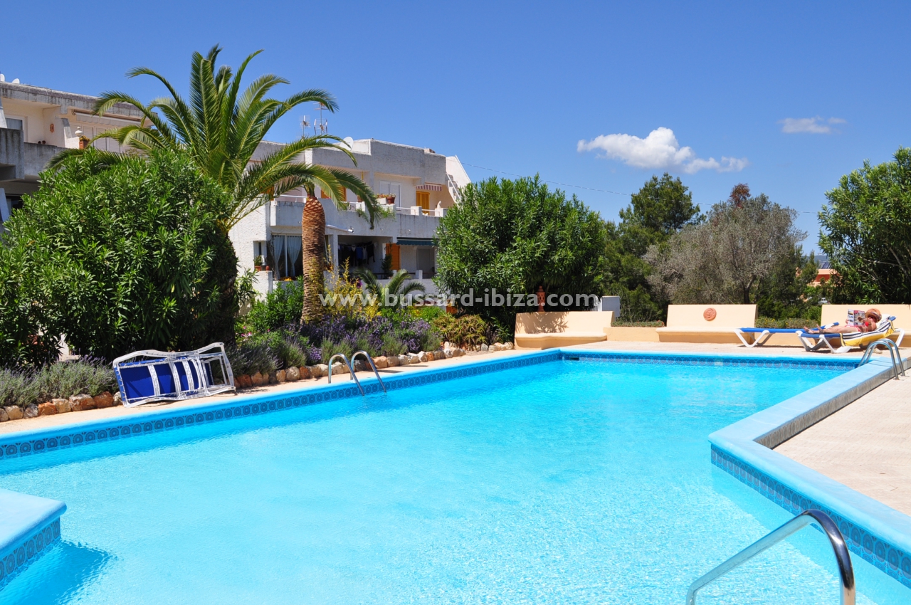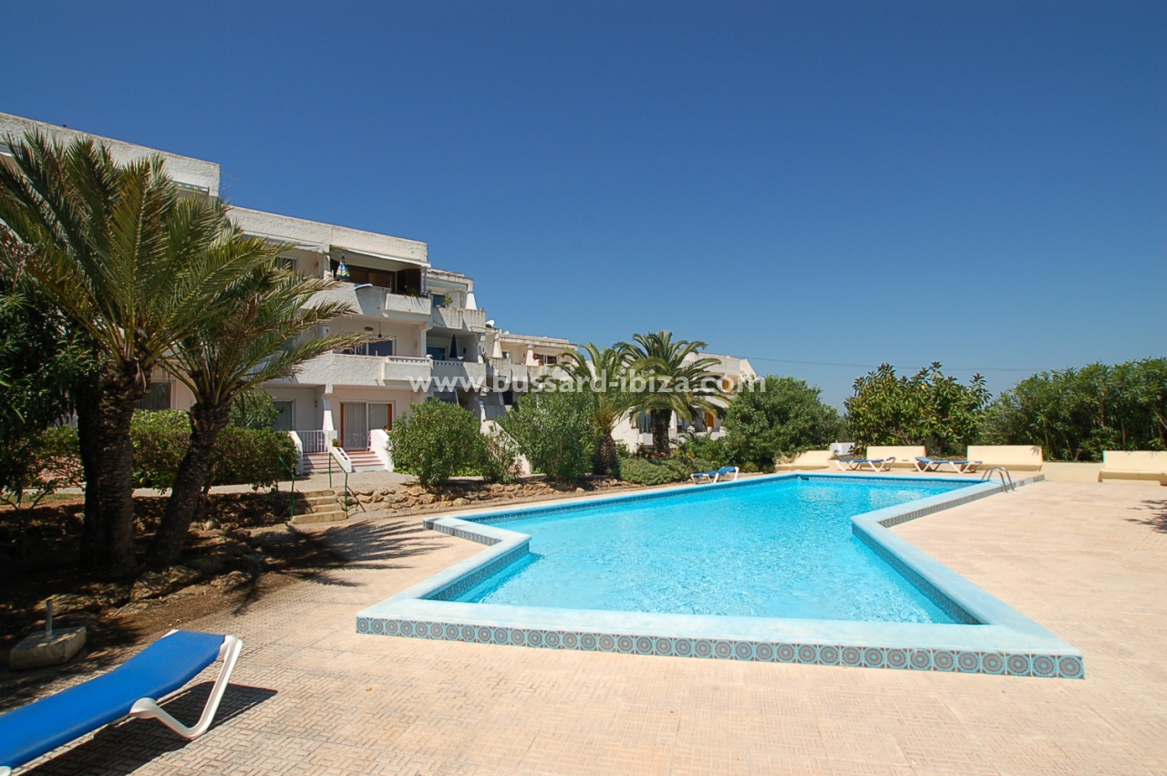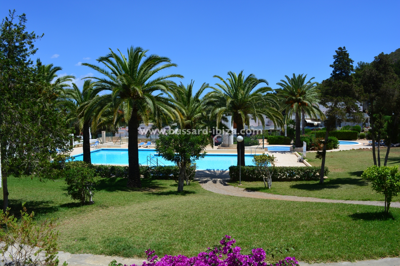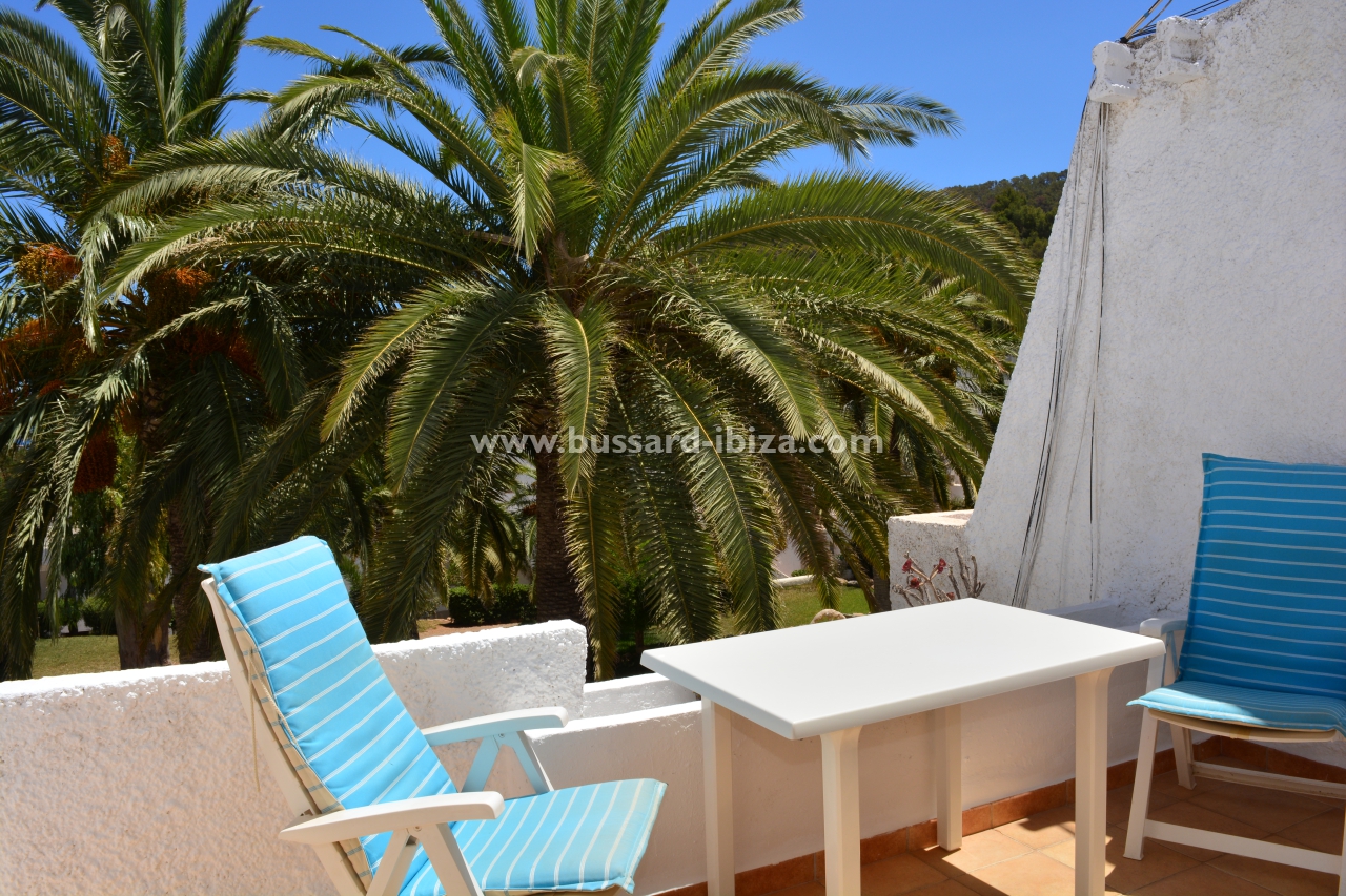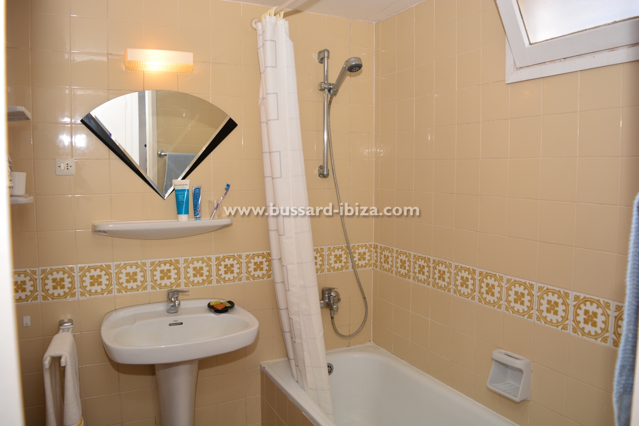 La propiedad se encuentra en una tranquila y urbanizada zona, a solo 1 km de Santa Eulalia del Río y a 2 km de Cala Llonga. La urbanizacion Miramar tiene unos bonitos y cuidados jardinecomunitarios, 2 piscinas y una piscina infantil. Estudio de unos 35 m² situado en la planta superior con vistas panorámicas a Santa Eulalia del Río, se distribuye en salón-comedor, cocina, 1 baño y terraza.