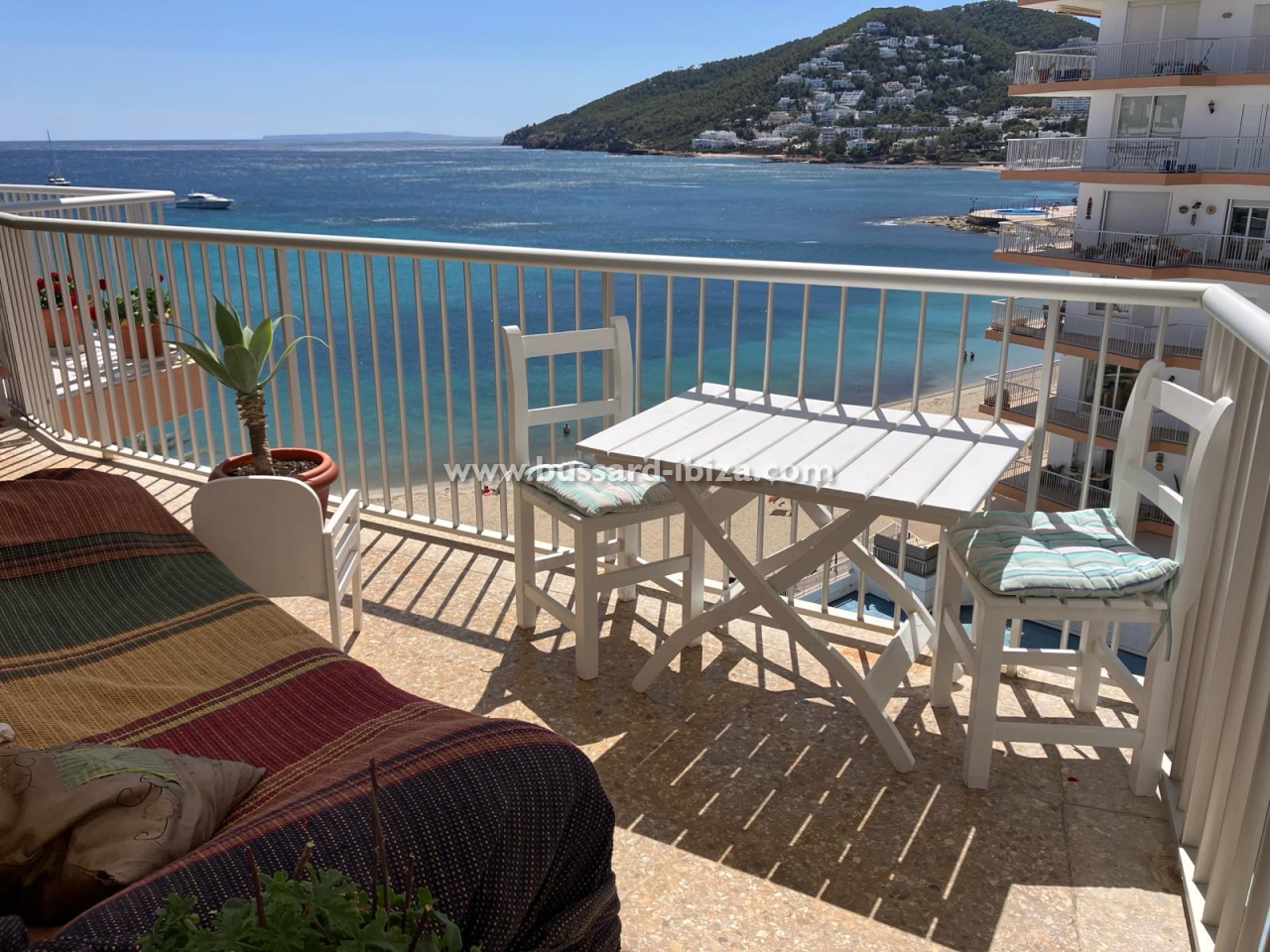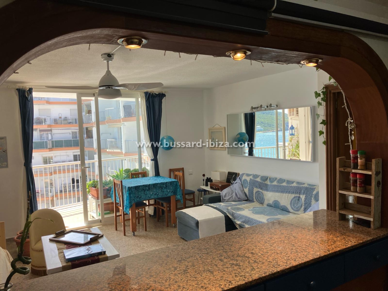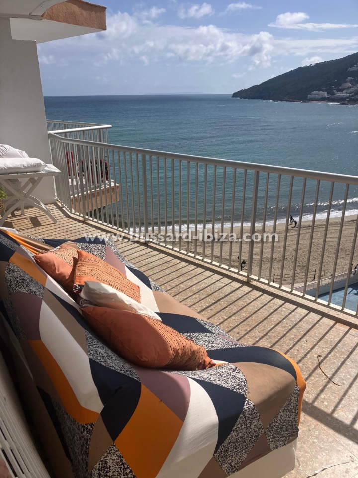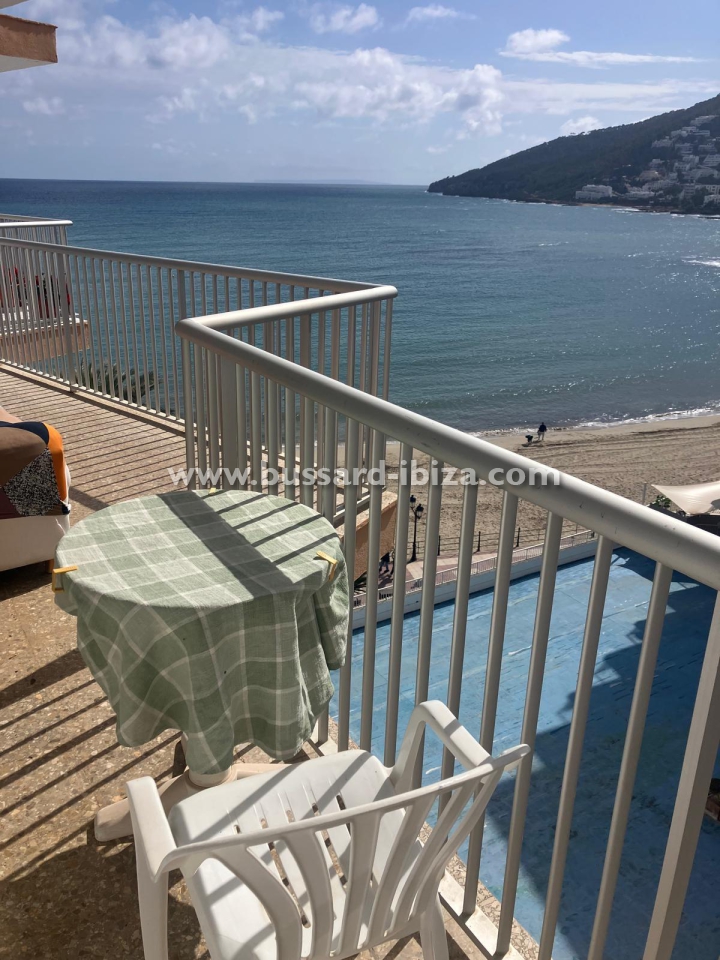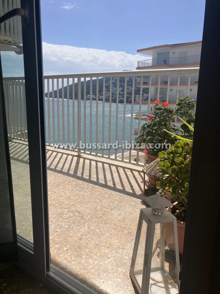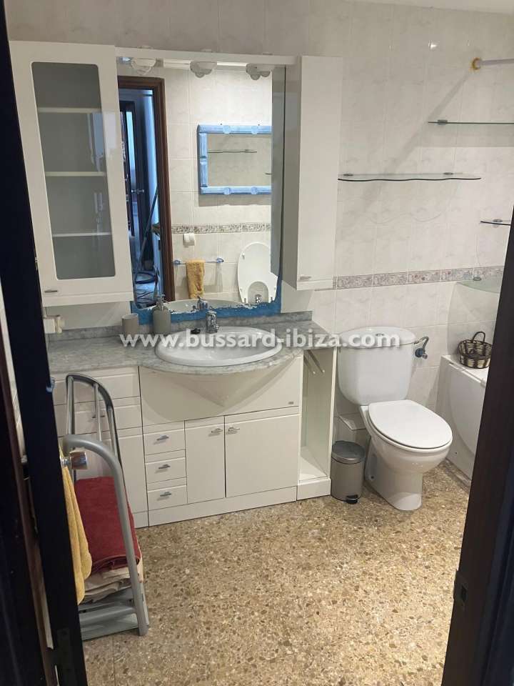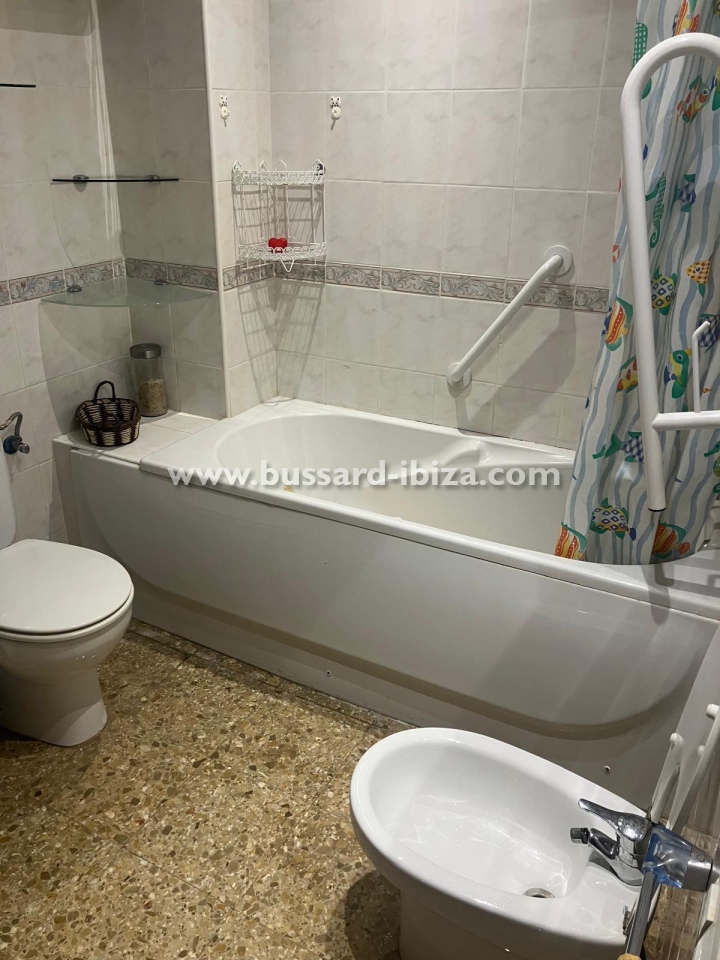 Schönes Appartment im Zentrum von Santa Eulalia mit herrlichem Meerblick, nur 30 Meter vom dem familien freundlichen Strand in Santa Eulalia del Rio entfernt. Ideale und zentrale Lage, so dass ein Auto ist nicht nötig, man kann zu Fuss Laden, Supermärkte,Restaurants.... erreichen. Die ca. 100 m² großes Appartment verfügt über zwei Doppelzimmer, zwei Badezimmer (eins mit Badewanne und das andere mit Dusche), Küche, Wohn-/Esszimmer und Terrasse. Die Küche ist komplett ausgestattet mit allen notwendigen Utensilien und Geräten. Klimaanlage ist ebenfalls vorhanden. Das Apaprtment kann saisonal gemietet werden. Maximale Belegung: 4 Personen. Preis auf Anfrage